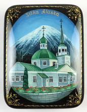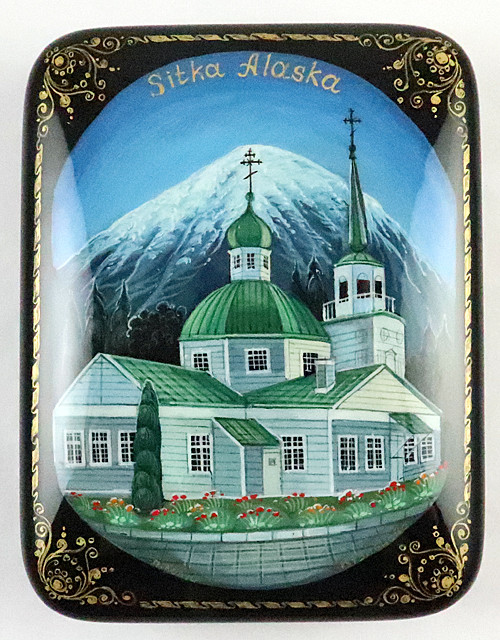 One of the most gifted Kholui artists, Kuznetzova, created this impressive box. Sitka is so beautiful that it got a name - "Paris of the Pacific".